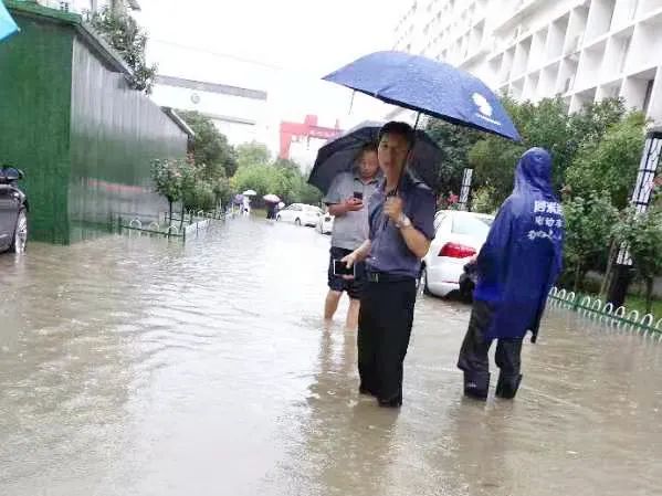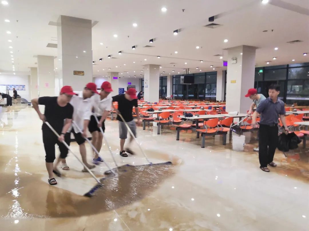 昨天夜裏,15名志願者和食堂員工一起清理積水