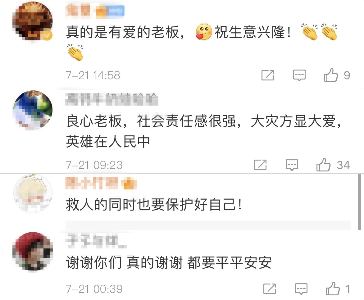 (觀察者網訊)日前,罕見暴雨突襲中原大地,包括鄭州在內的河南多地出現嚴重城市內澇,不少羣眾被困,防汛形勢十分嚴峻。險情面前,河南當地企業積極展開自救,7月20日-21日,當地酒店、電影院、便利店、茶葉店、超市、水上項目企業紛紛助力救援,河南人民守望互助的畫面時刻在上演。
