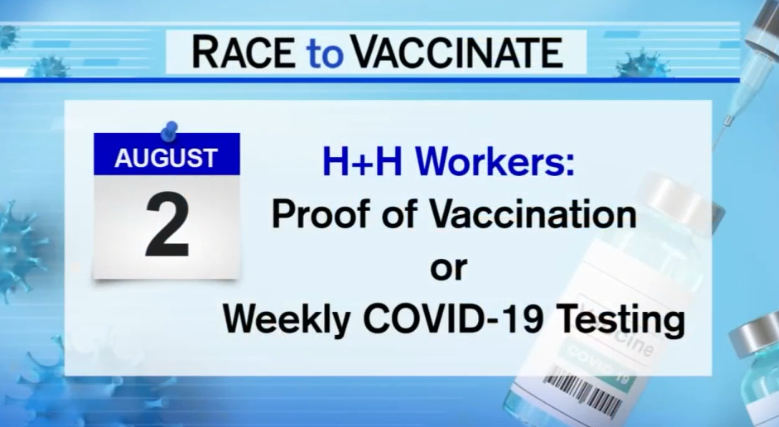 醫院員工需疫苗免疫或每週核酸檢測,美媒視頻報道截圖,下同