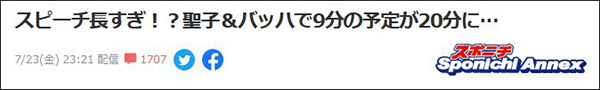 日媒稱,奧組委事先提供的資料顯示,原定兩人致辭加起來共9分鐘。可是,實際上兩人卻耗時共約20分鐘。