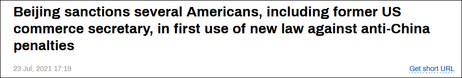(觀察者網訊)昨日(23日),為回擊美方非法制裁多名中國中央政府駐港機構官員,中方根據《反外國制裁法》對前美商務部長羅斯、美國會“美中經濟與安全評估委員會”(USCC)主席卡羅琳·巴塞洛繆等7個美方人員和實體實施制裁。