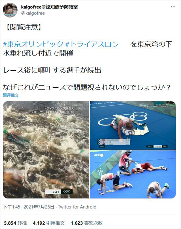 “把鐵人三項比賽放在東京灣的下水排放口附近舉辦,賽後選手們紛紛嘔吐,為什麼這些不被新聞報道視為問題呢?”
