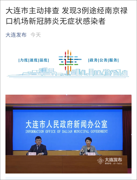 大連新增3例本土無症狀,為大連市排查南京來返遼人員中發現