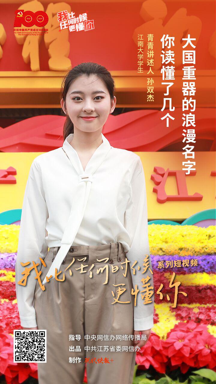 7 月 27 日,” 我比任何時候更懂你 " 系列短視頻第 3 集《大國重器的浪漫名字,你讀懂了幾個?》上線。本集青青講述人是江南大學學生孫雙傑。