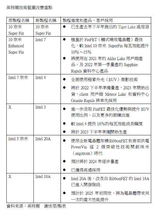 不過,英特爾最終拗不過代工市場的老大和老二,該公司週一表示,將跟隨業界改變芯片技術命名方式,例如10nm SuperFin名稱改為7nm,7nm更名為4nm。與業內相比,台積電將在明年二季度推出4nm,英特爾則在2023年二季度推出,二者相差縮短至一年。
