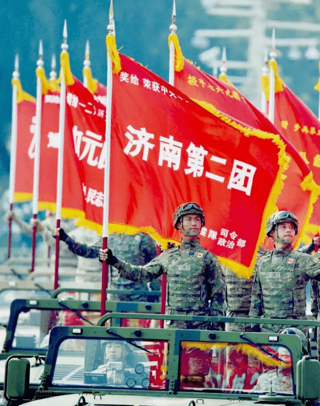 據東部戰區陸軍微信公眾號“人民前線”介紹,在慶祝中華人民共和國成立70週年閲兵中,“濟南第二團”的戰旗就曾和99面榮譽旗幟整齊列隊,首次組成了威風凜凜的戰旗方陣。毫不誇張地説,每一面旗幟都是一部紅色戰爭史詩,展示了土地革命戰爭時期、抗日戰爭時期、解放戰爭時期以及新中國成立以來戰功最彪炳的100支部隊。