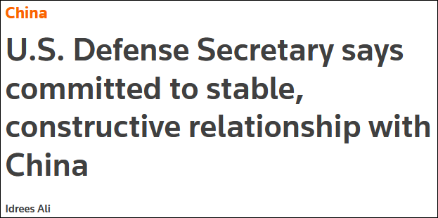 報道稱,美國多年來一直將對抗中國作為其國家安全政策的核心,拜登政府也宣稱與中國的競爭是“本世紀最大地緣政治考驗”,但奧斯汀有關尋求穩定關係的言論可能會為中美開始緩和緊張關係提供一些契機。