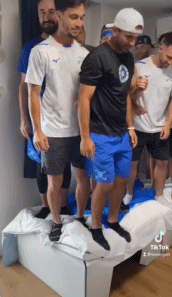 澳大利亞女子曲棍球隊隊員也上傳了5人同時上牀,和3人在牀上同時跳躍的照片,以表示牀的強度沒有問題。
