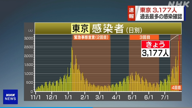 27日,東京都新增確診病例2848例,創下新冠疫情暴發以來單日新增病例紀錄。此次新增病例超過3000例,連續兩天刷新單日新增病例紀錄。