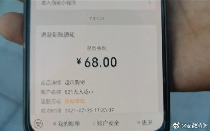 據@安徽消防,26日,阜陽市消防救援支隊在鄭州市惠濟路去天河碧貴桂小區進行排澇作業,當天氣温炎熱,飲用水消耗量大,在小區旁邊的一家無人超市,消防員購買了飲用水,並且掃碼付了款,可是沒等一會兒,錢被退了回來!