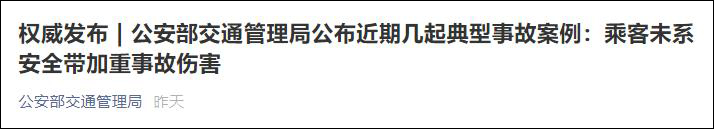 據“公安部交通管理局”微信公眾號7月29日消息,7月以來,在高速公路發生的交通事故反彈明顯,特別造成羣死羣傷的惡性交通事故上升明顯,這些典型事故案例都反映出乘客因未系安全帶在事故發生時或被甩出車外,或被甩離座位,加重了傷亡後果。