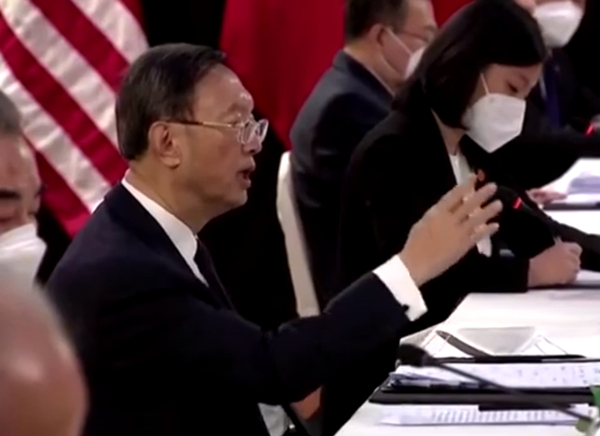 中美阿拉斯加對話,楊潔篪:美國沒有資格居高臨下同中國説話,中國人不吃這一套 視頻截圖