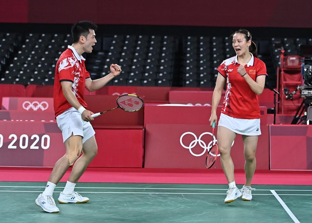 7月29日,在東京奧運會羽毛球混雙半決賽中,中國組合鄭思維/黃雅瓊戰勝中國香港組合鄧俊文/謝影雪,晉級決賽。新華社記者 朱崢 攝