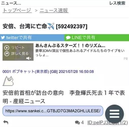 《產經新聞》報道發出後,台媒報道稱,台外務部門立即將安倍捧為“備受推崇的重要國際領導人”,細數安倍多次公開聲援台當局的相關活動,並舉例提到了在抗疫時,下台後的安倍“在幕後居間協助”,與現任日本首相菅義偉合作,促成日方向台輸送超300萬劑疫苗。