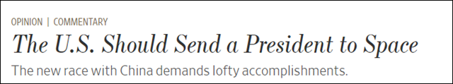 美媒:為了與中國競爭,咱們送美國總統上太空吧