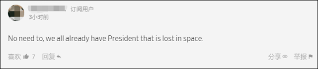 “沒必要,我們的總統已經迷失在太空裏了。”