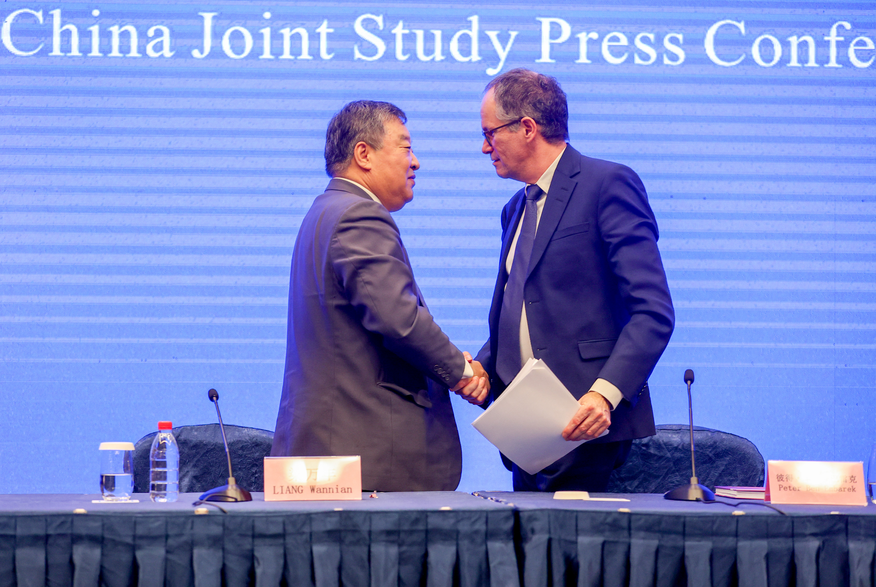 2月9日,中國-世衞組織新冠溯源研究聯合專家組在武漢舉行新聞發佈會,左為梁萬年 東方IC圖