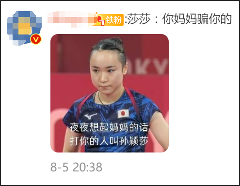 女單、女團伊藤連輸兩次後,很多中國網友玩梗“夜裏想起媽媽的話,贏你的人叫孫穎莎。”微博、微信上還流傳着許多伊藤的表情包。但是説伊藤美誠童年不幸,被媽媽教育得心態畸形則沒有根據。