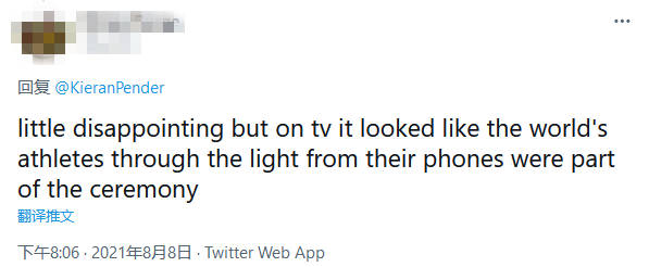 不過這還不是最大的爭議,當晚不少媒體記者曬出了現場實景圖,吐槽“光之五環”其實是用電腦特效做出來的,只有在電視轉播畫面中才看得見,現場根本是一片黑。還有些國家的運動員看了個寂寞,無聊到乾脆提前退場。