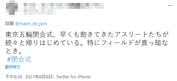 還有現場網友爆料,到後來,閉幕式上感到厭倦的運動員們都開始陸續返場,尤其是當運動場展示五環,漆黑一片的時候。