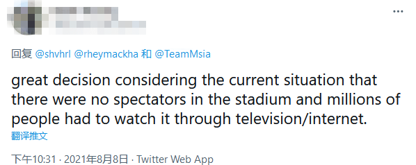 “考慮到目前體育場內沒有觀眾,數百萬人不得不通過電視/互聯網觀看的情況,這是一個偉大的決定。”“就算是特效還是挺酷的啦~”