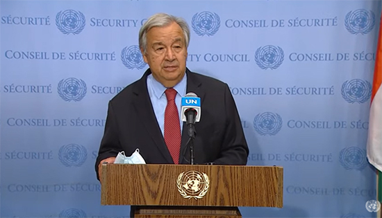 聯合國秘書長古特雷斯發表講話,視頻截圖