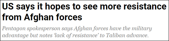 “美國希望看到阿富汗政府軍多抵抗一下”,半島電視台報道截圖