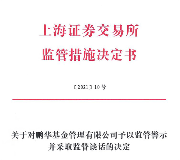 13日當天,上交所還在其官網公佈了對明汯投資、少藪派投資、誠奇資產以及平安養老保險予以監管警示的處罰;對鵬華基金則給予監管警示並採取監管談話的決定,要求其督察長、新股定價研究部分相關負責人於2021年8月19日上午10點至上交所接受監管談話,説明有關情況,並提供科創板新股詢價相關的書面自查整改報告。