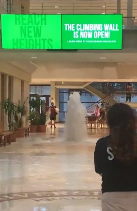 同樣遭“水災”的還有得克薩斯大學奧斯汀分校(UT-Austin),在該校體育館內的大廳,地面噴出噴泉般的巨大水柱。福克斯新聞稱,“目前尚未確認有何損失。”