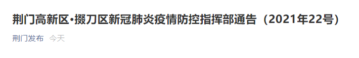 8月17日,“荊門發佈”微信公眾號發佈荊門高新區•掇刀區新冠肺炎疫情防控指揮通告: