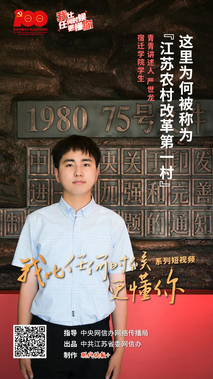 8月17日,” 我比任何時候更懂你 " 系列短視頻第24集《這裏為何被稱為 " 江蘇農村改革第一村 “?》上線,本集青青講述人是宿遷學院學生嚴世龍。