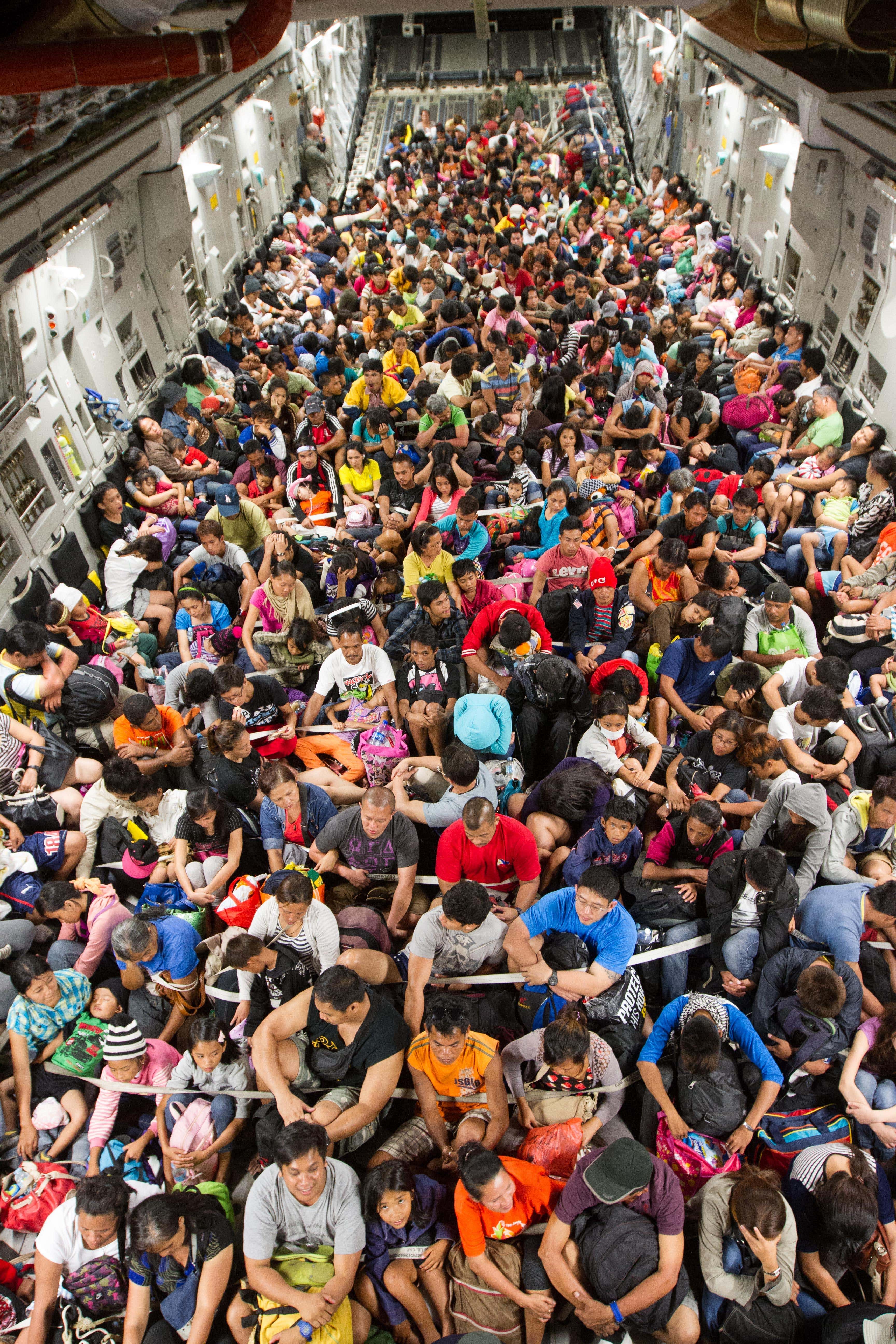 但實際上,C-17曾在救援中出現過大幅“超載”的情況。例如2013年菲律賓超強颱風海燕襲擊菲律賓,一架C-17搭載了670人。