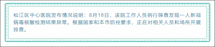 據上海市人民政府新聞辦官微“上海發佈”8月18日消息,松江區中心醫院發佈情況説明,全文如下: