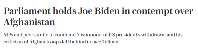 8月18日,英國國會下議院就阿富汗局勢進行了緊急辯論,不同政治派別的議員對拜登發起了前所未有的譴責,抨擊其在阿富汗撤軍問題的處理上是“災難性的”和“可恥的”。