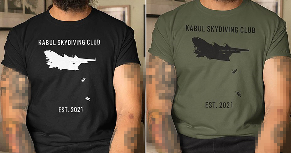 近日,在喀布爾機場發生阿富汗人從美國軍機上墜落事件後,有一家美國公司居然將當時的悲慘場景印在T恤上,還配上了“喀布爾高空跳傘俱樂部”的字樣。設計者甚至在商品描述中表示,這款T恤非常適合喜愛跳傘的人購買。