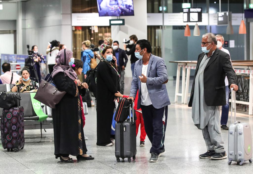 8月20日,乘坐漢莎航空公司飛機撤出阿富汗的人們抵達法蘭克福國際機場。新華社發(阿曼多·巴巴尼攝)