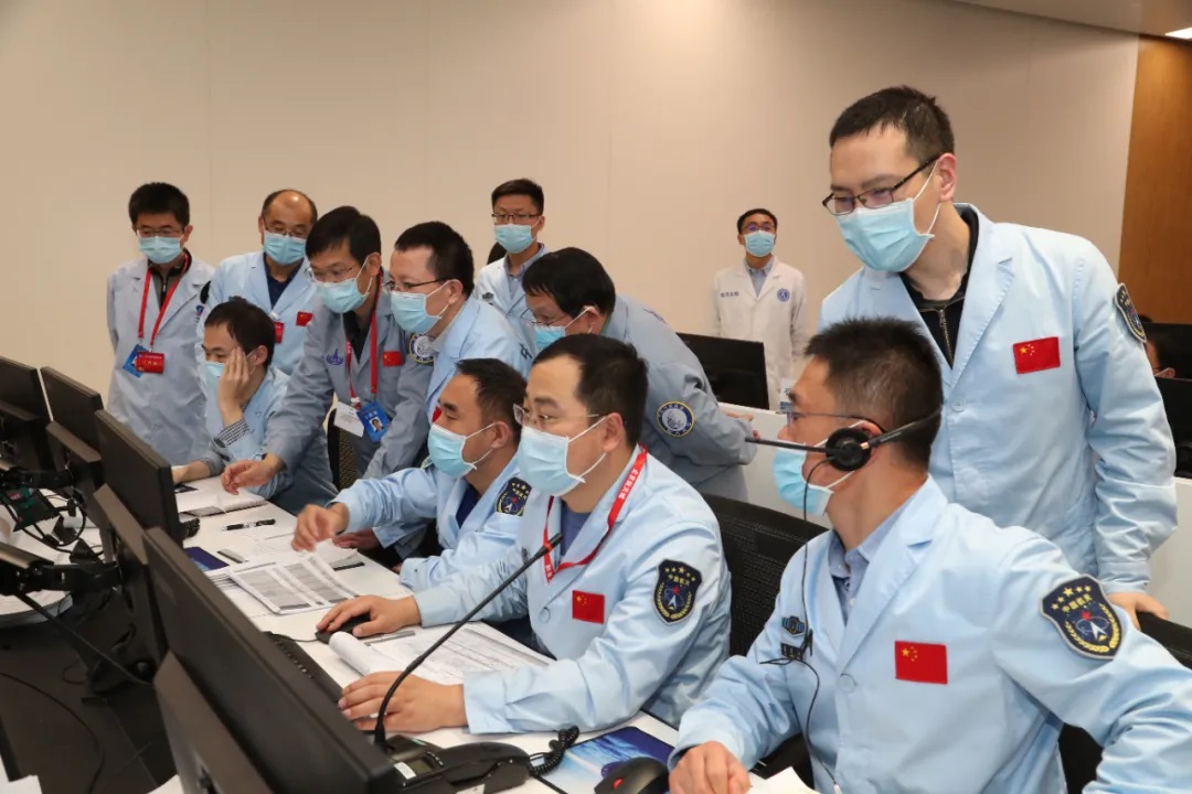 5月14日,飛控團隊早早進入控制大廳,有條不紊地實施進入、下降、着陸前最後的參數注入。