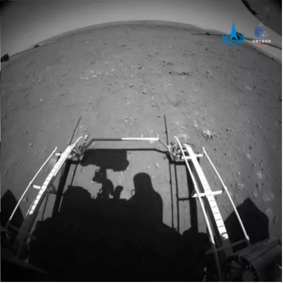 前、後避障相機採集的20對圖像清晰地呈現在大家面前,火星車駛離的過程被記錄在這組圖像上。最後一張後避障相機圖像顯示,“祝融號”已成功駛離着陸平台,穩穩地踏上火星表面, 中國印跡第一次被鐫刻在這顆紅色星球上!