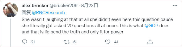 與此同時,哈里斯“不合時宜”的大笑,又讓共和黨人及其支持者抓到了新的把柄。目前,拜登政府正因阿富汗問題在國內受到巨大壓力,共和黨人正對其應對措施展開猛烈抨擊。