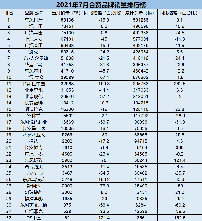 車市月觀察丨7月合資品牌:德系式微延續,日產銷量登頂