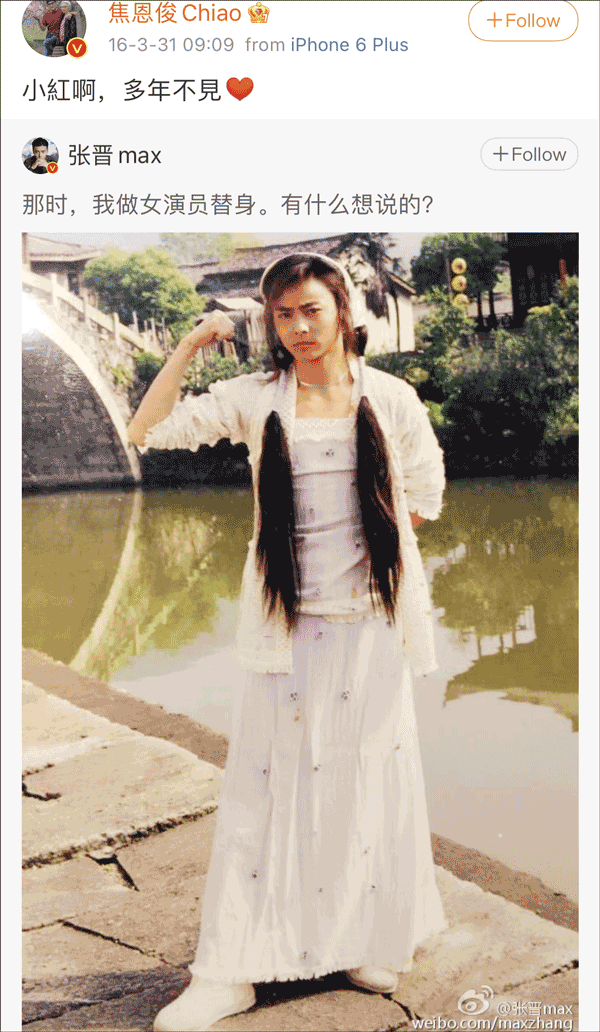 在焦恩俊版《小李飛刀》(1999)中,張晉就擔任過賈靜雯(飾孫小紅)的替身。