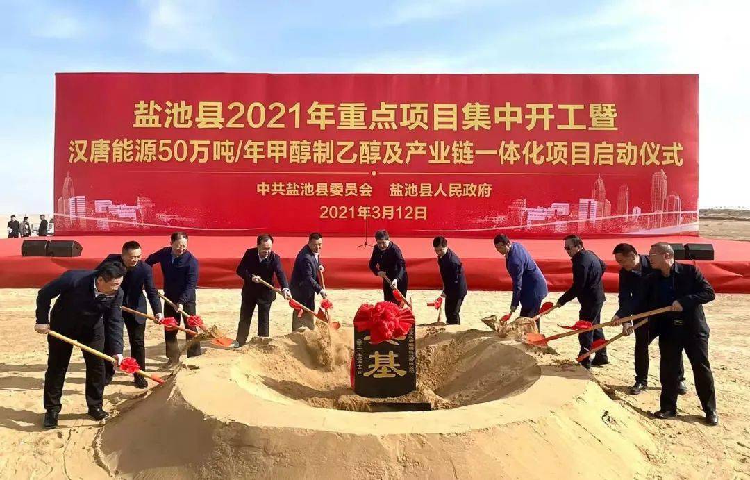 今年3月份,鹽池縣政府網曾發文稱,漢唐能源50萬噸/年甲醇制乙醇及產業鏈一體化項目在該月舉行啓動儀式。項目主要對外購的廢醇進行綠色高效分離,實現危廢的循環再利用。項目計劃總投資21.85億元,分三年期實施建設,將建設熱力中心,滿足本企業供熱的同時為園區其他企業進行集中綠色供熱。