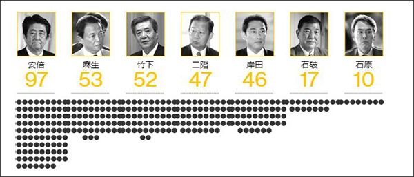 隨着各參選人逐漸清晰起來,“各大派系都支持誰?”這一問題便成為了日本媒體關注的焦點。