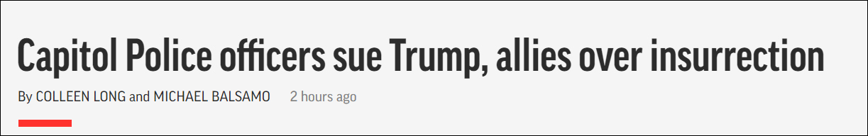 (觀察者網訊)據美聯社(AP)報道,當地時間26日,在國會大廈騷亂事件中遭到襲擊和毆打的7名美國國會警察對美國前總統特朗普及其盟友和支持者提起訴訟,稱他們於1月6日密謀了針對國會大廈的“國內恐怖主義行為”,故意派遣暴徒干擾2020年大選票數清點,非法謀求連任。