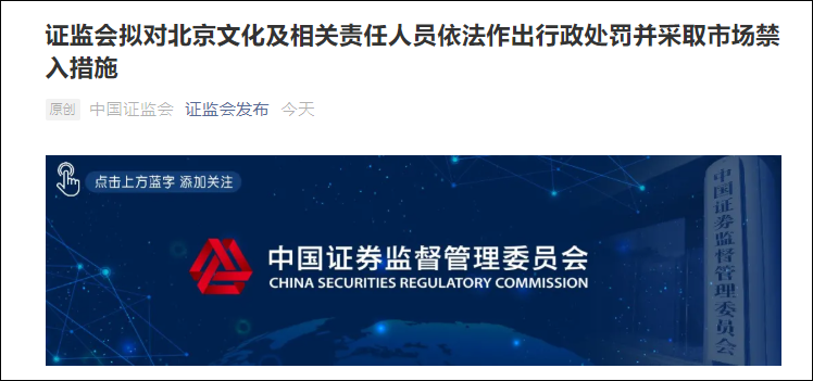 證監會擬對北京文化及相關責任人作出行政處罰並採取市場禁入措施