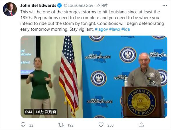 愛德華茲還對CNN稱,目前路易斯安那州已動員了超過4000名國民警衞隊士兵和飛行員,另外到風暴登陸時還將會有5000人已做好準備。