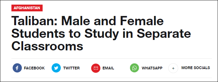 阿富汗塔利班:女孩有權接受教育,但男女學生教室將分開