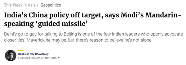 不過,他在文中也提到,印度政府當初之所以派他前往中國“破冰”,除了他被視為“中國通”外,“他並不會‘只看中國積極的一面’(viewed China ‘without wearing rose-tinted glasses’)也是一個重要原因”。