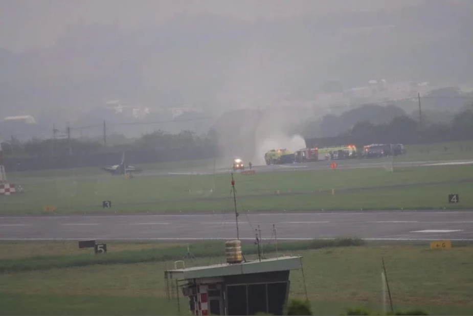 據報道,今天上午屏東天氣不佳,一度下起大雨。屏東空軍基地F-16戰機在6點30分左右,執行“漢光”演習預演。一架編號6829的F-16戰機在降落時,疑因下雨跑道濕滑,不慎衝出跑道,機頭插入跑道口的土裏。隨後,多輛消防、救護車趕緊上前救援。王姓目擊者説,現場消防車突然湧上,氣氛緊張。
