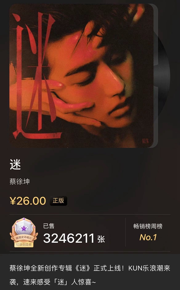 近日,偶像歌手蔡徐坤新專輯《迷》售賣4個多月,歌單裏的歌才放出來一半,引發廣泛質疑。